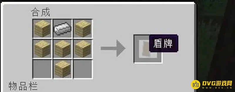 3、收集好材料后,按下图在工作台中摆放合成就能获得一面盾牌