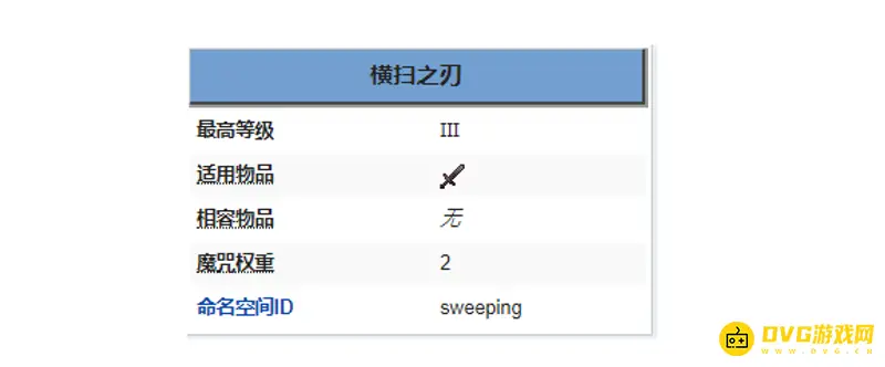 我的世界横扫之刃最高等级为3级。I/II/III级分别为每一次横扫攻击对每个生物造成的伤害附加50%/67%/75%的武器基础伤害。 横扫之刃是一种用于剑的魔咒,能增加横扫攻击的伤害。
