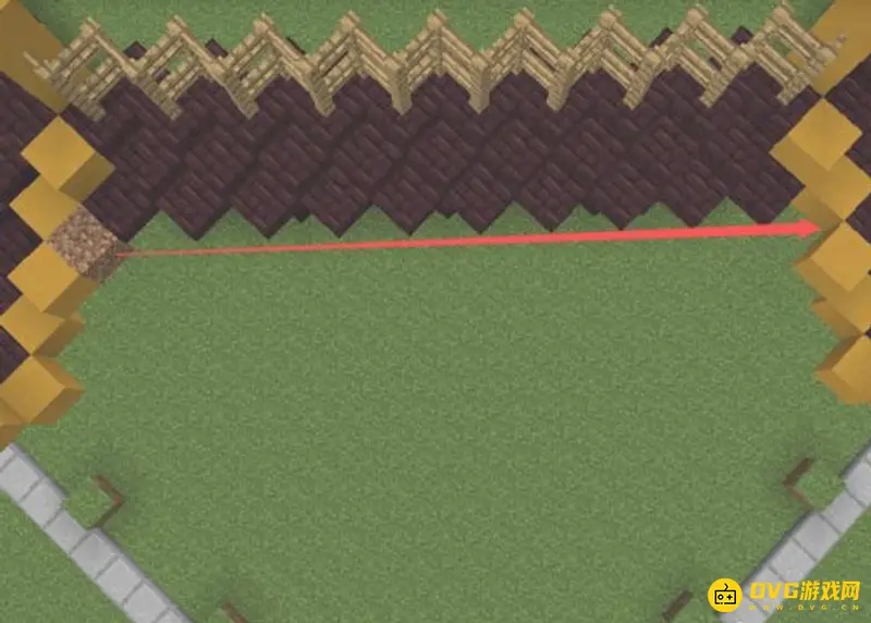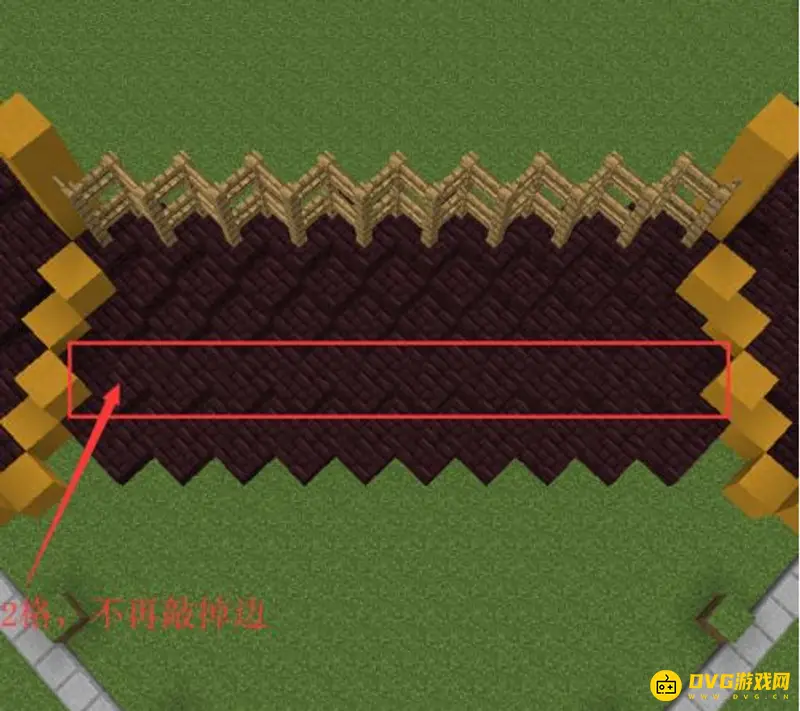 3.在第九格放置两个地狱砖,分别向两边再铺6格。(4个边都是一样的做法。后面我就不细讲了,只讲一个边。)