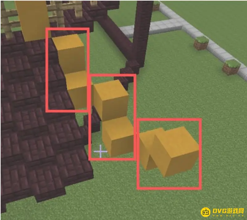 9.在黄色粘土柱向外的一格放两个黄色粘土,一格高一格低。