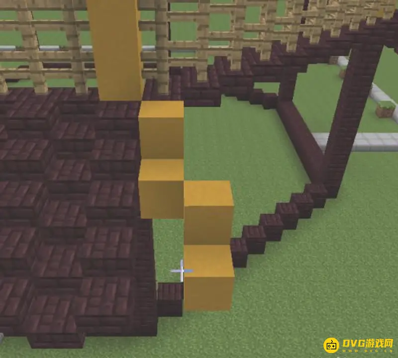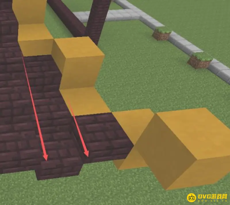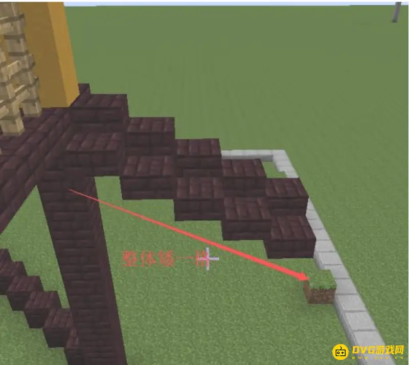 8.紧挨着这个斜坡矮半格再铺一个斜坡,然后按照这样的方法一直铺满到第二个柱子。四个边都一样的做法。
