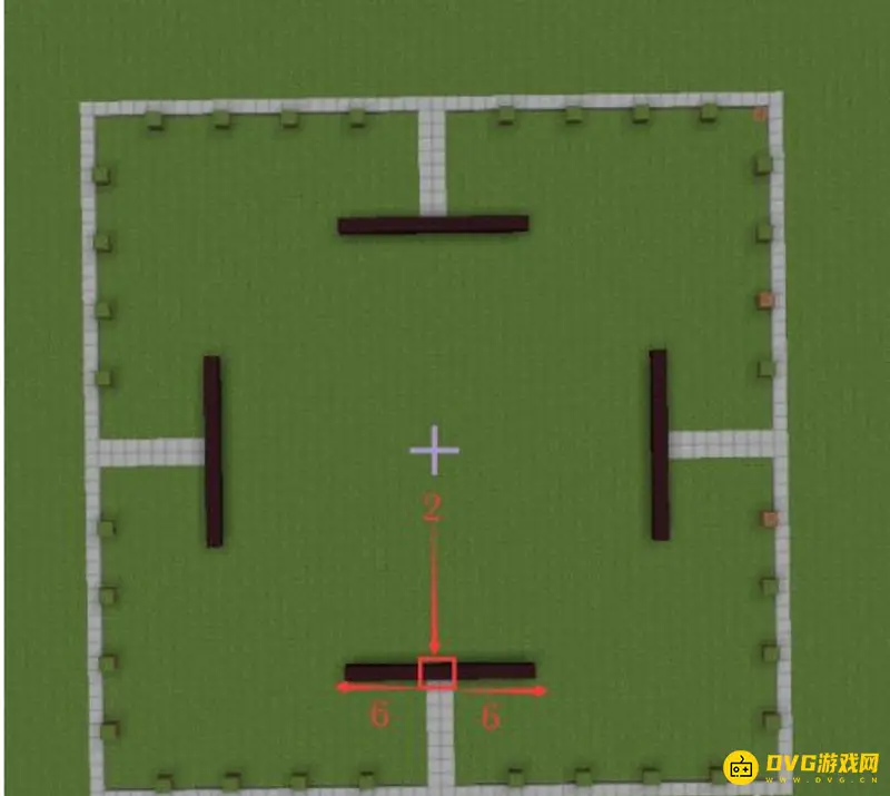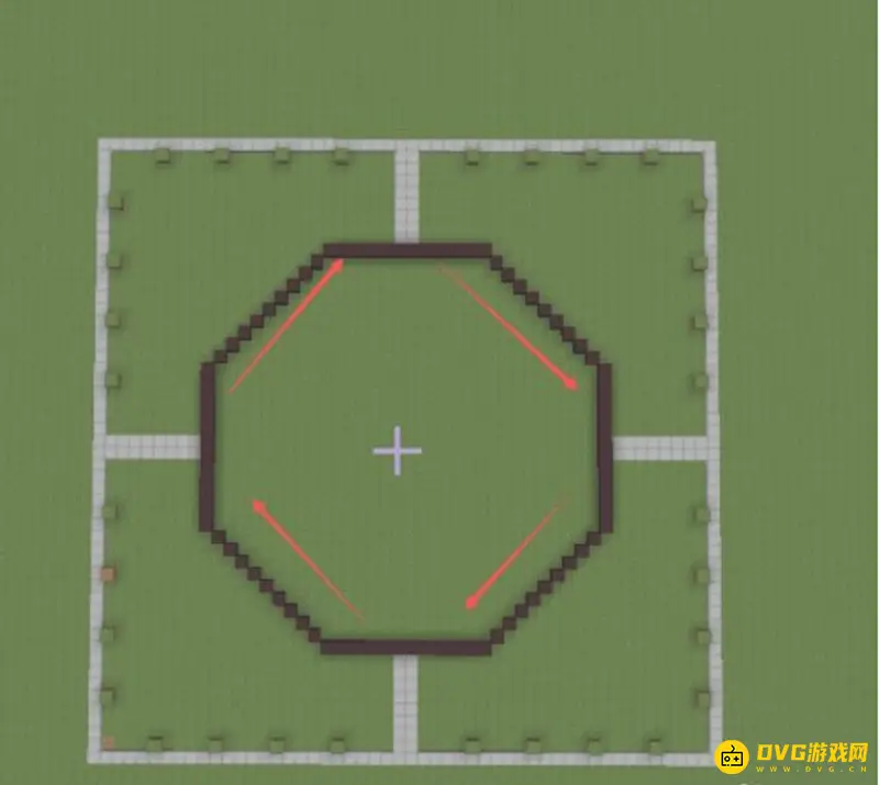 1.首先在空旷的地方用石半砖铺一个长52格宽52格的正方形区域。