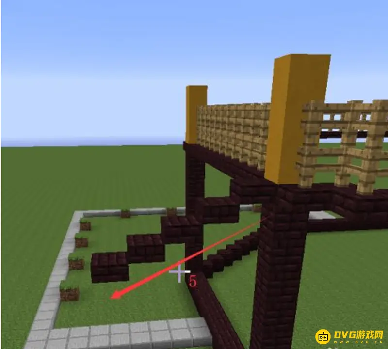 22.先铺直线的区域的斜坡一上一下的铺。不过跟第一层不一样的是,我们这次用4格的长度。(一层是5格)