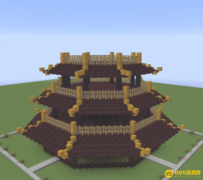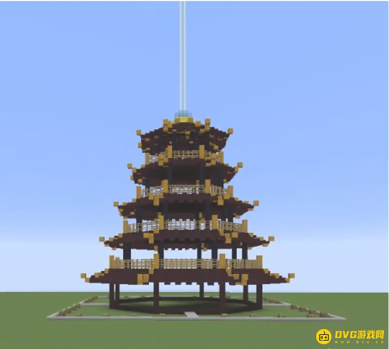 11.再向外一格,这次放一格低一格高的黄色粘土。这样塔的棱角就完成了。