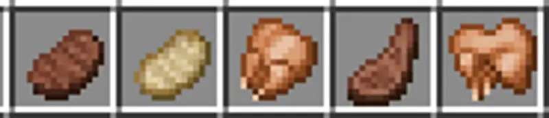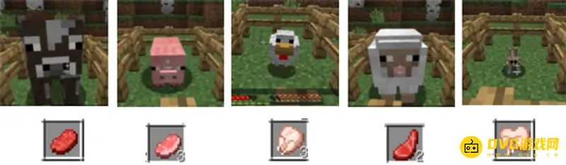 6、一共有五种动物可以作为食用肉的来源。牛/牛肉、猪/猪肉、鸡/鸡肉、羊/羊肉、兔/兔肉。杀死动物,就能获得相应的生肉。