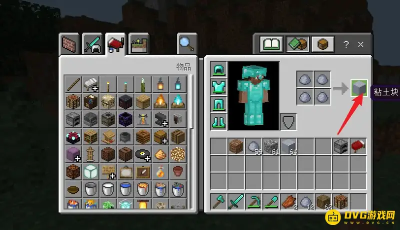 3、打开我的背包,可以将4个粘土球合成1个粘土块。