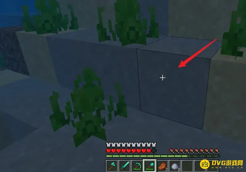 1、进入我的世界,找到河流后潜泳,如下图所示。