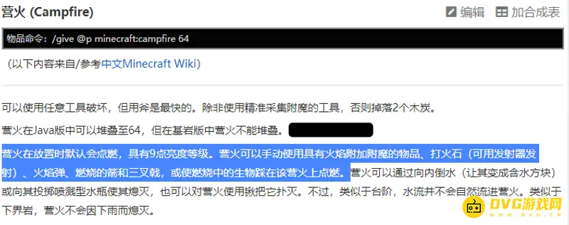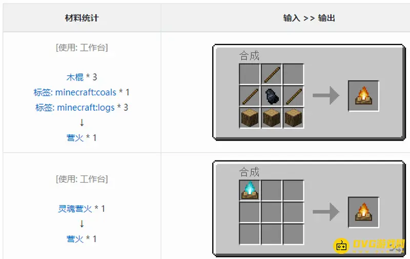 制作营火需要3个原木、3个木棍以及一个煤炭,下面三格摆放原木,中间摆放煤炭,煤炭的左边右边和上分摆放木棍即可合成营火,营火可以无限燃烧,可以用水熄灭,再次点燃需要用打火石。
