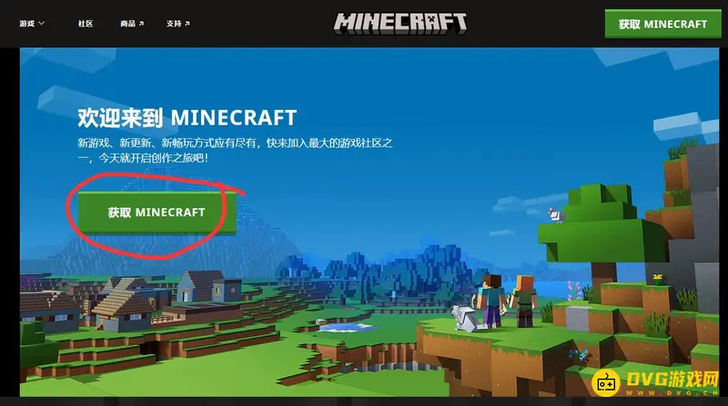 1,首先我们进入我的世界官网,点击左侧的获取游戏。