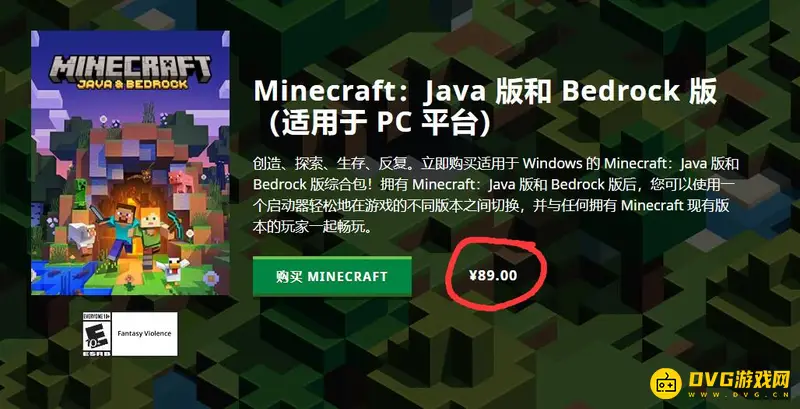 2,然后就可以发现这款游戏基岩版和JAVA版共同的价格为89元人民币了。