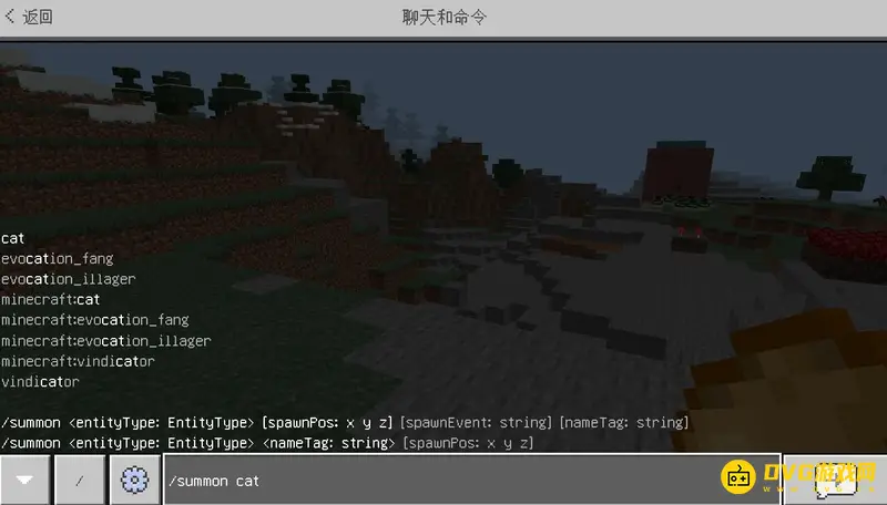 1,例如我们想召唤猫,我们就可以输入/summon cat。