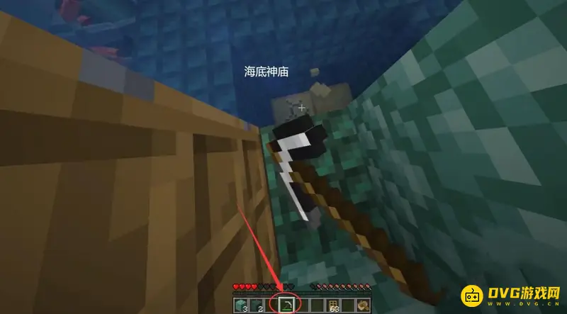 1、开采矿石。首先进入海底神庙,使用铁锹开采矿石