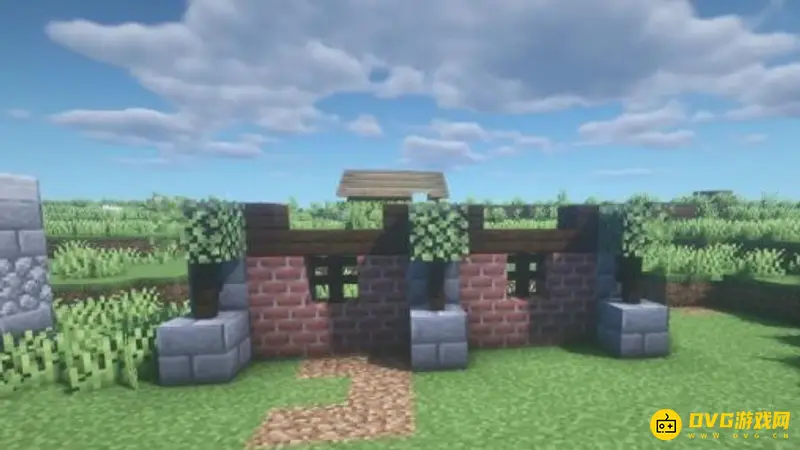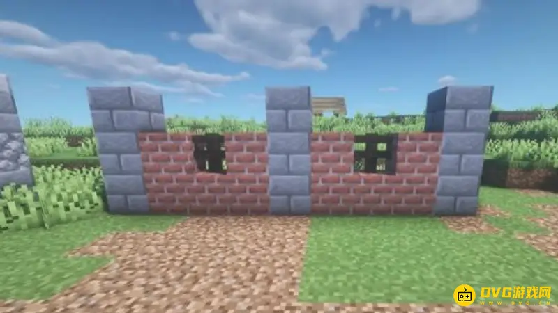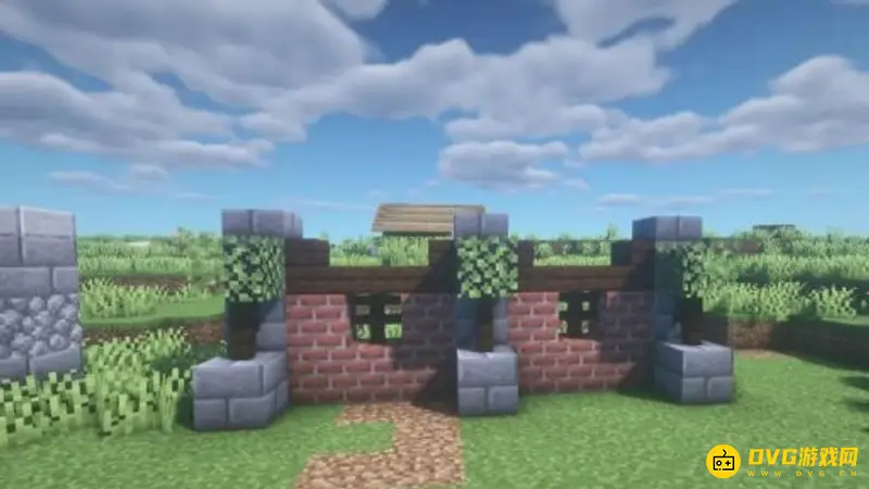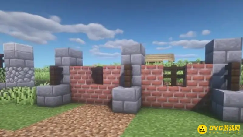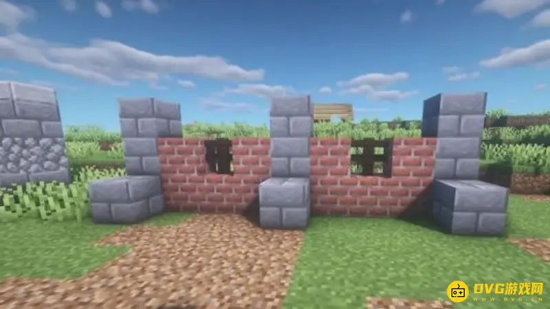 接着在柱子间放置砖块和栅栏,完成基本的墙面。