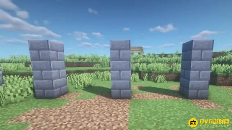 首先用三格高的石砖做成三根柱子,它们之间相距三格。
