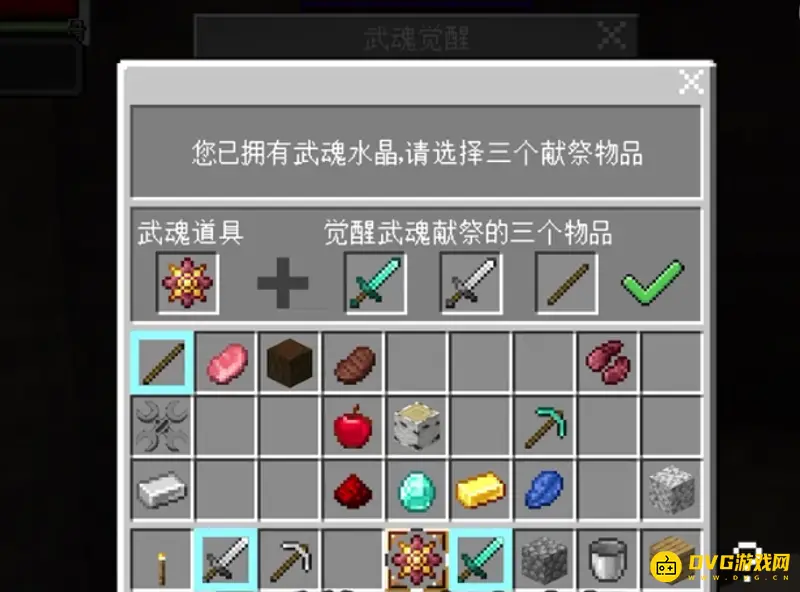 我的世界武魂觉醒台1.开局会送我们一个武魂水晶(用来在觉醒台上觉醒武魂)和一本魂师手册(新手手册告诉玩家怎么玩)。
