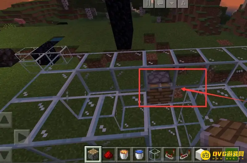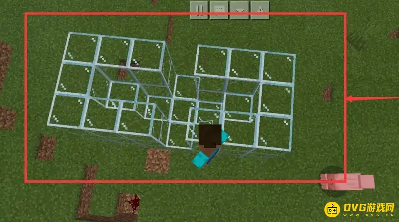 2、用玻璃块建造一个3×7×3的玻璃方块凹槽,如下图。
