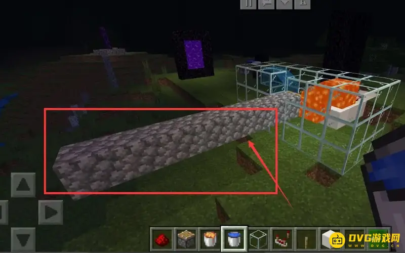 6、当活塞收进去后,水和岩浆就碰到一起,生成石头,在脉冲电路的驱动下,活塞又激活,把刚刚生成的石头顶出来,如此循环往复,源源不断地生成石头,自动刷石机就建造完成了。