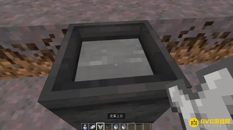 2,接着我们拿着盔甲,右键点击炼药锅,就可以给盔甲染色了。