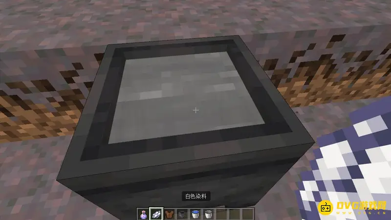 1,首先我们需要找到炼药锅,然后把里面给装满水,拿着染料右键点击炼药锅,给里面的水染色。