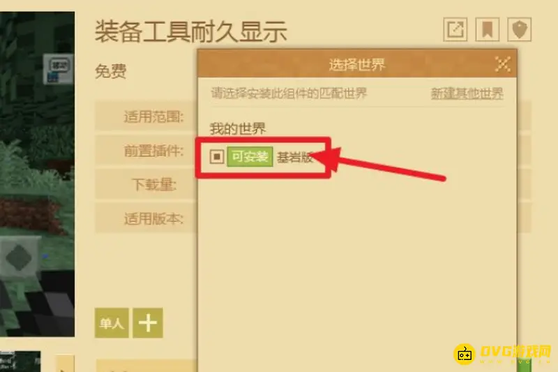 7、勾选我们创建的基岩版游戏。