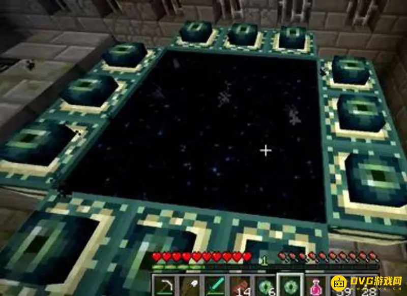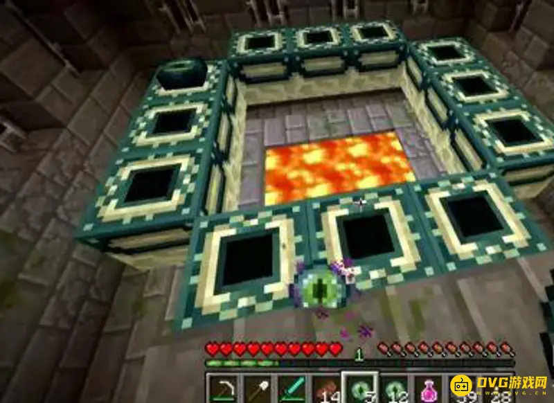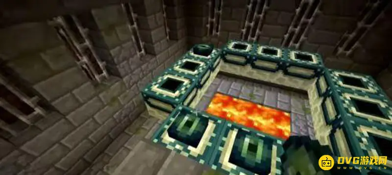 3,极少数的地牢会放置好末地传送门的框架,如果没有框架,我们就需要自己使用12个末地传送门方块,摆放缺少死角的末地传送门框架。
