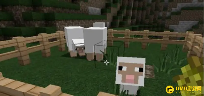 4、在羊面前拿出小麦种子,不要喂食,接着拿着小麦种子去栏杆的地方,羊看到小麦后就会跟着你走。