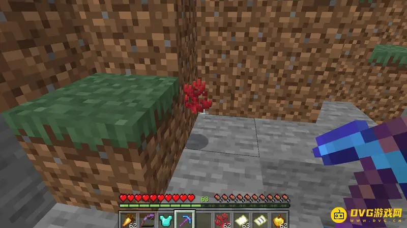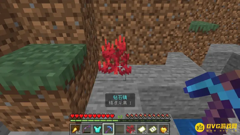 1,例如我们可以用带有精准采集的钻石镐左键点击珊瑚。