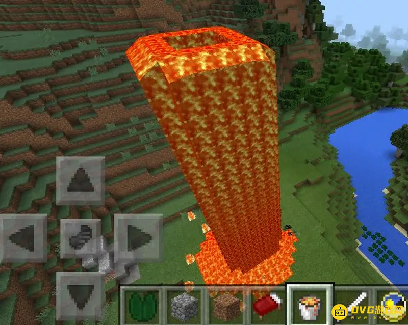 4、使用道具“岩浆”,在楼顶往周围倒。