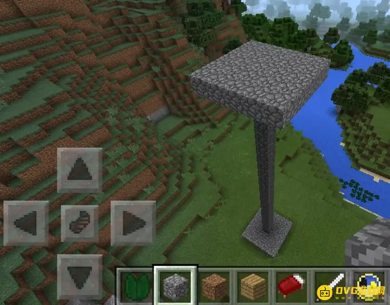 3、下一步柱子的顶部建造与底座直径相同的楼顶,注意要事先计算好方块的数量。