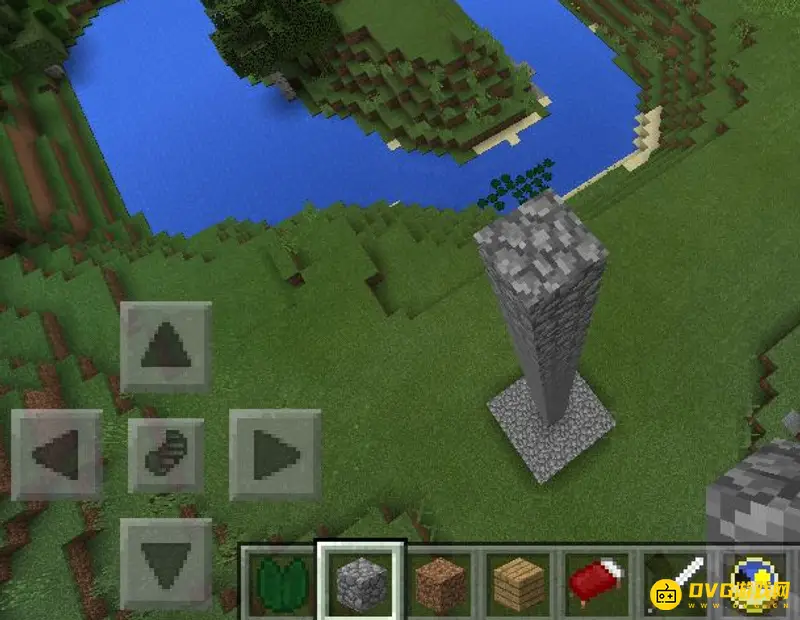 2、然后在底座的圆心或者中心,向上垒一个只有一个方块直径的柱子,直至垒到想要的高度为止。