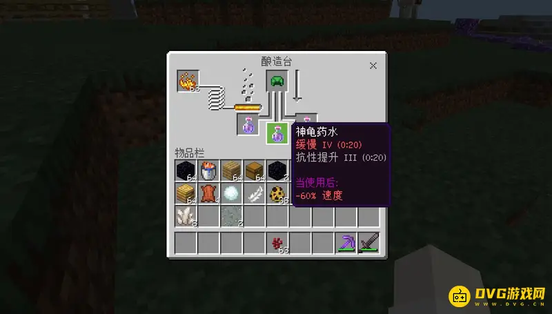 4,接着把上方材料替换成龟壳,就可以制作出缓慢药水了。