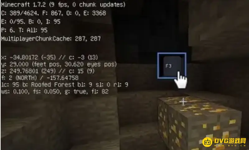 1、在游戏中首先要做的是记住自己出生点的坐标,想要看坐标点击键盘F3即可打开。