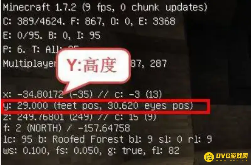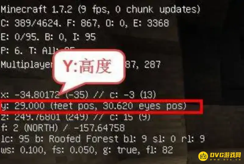 3、Y:海拔高度,脚踏地表一般60以上,向下逐步减少,在挖矿是查看的深度即y值,所说的矿石所在层的高度就是该数值。