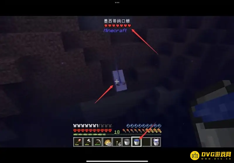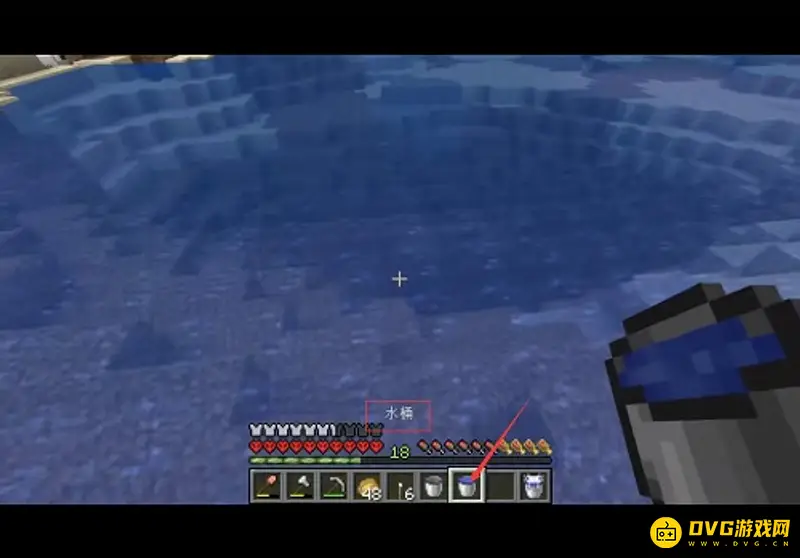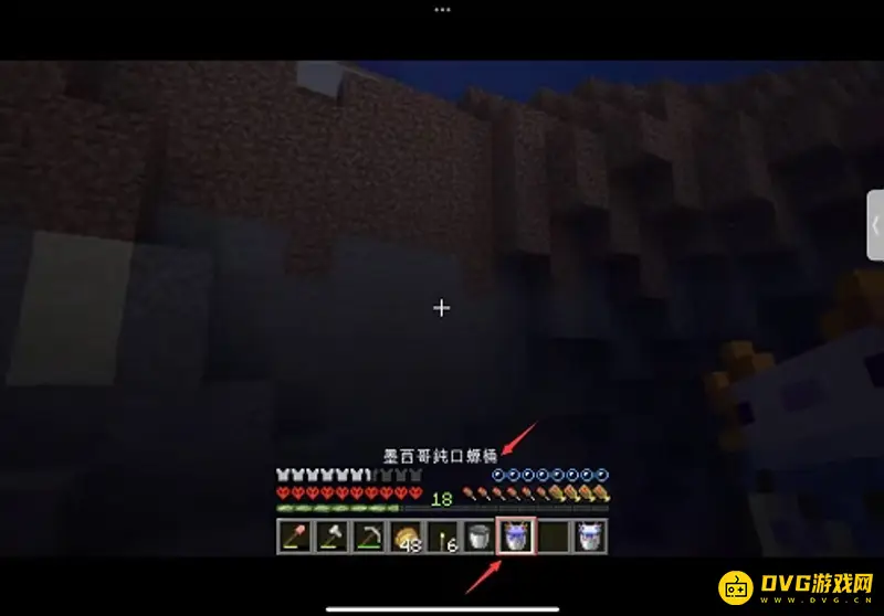 3、物品栏选择水桶,鼠标点击水中的墨西哥钝口螈。