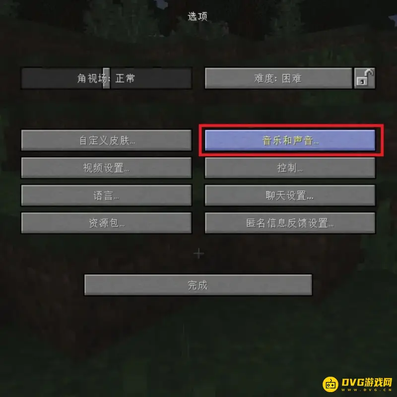 3. 在选项菜单中点击“音乐与声音”按钮。