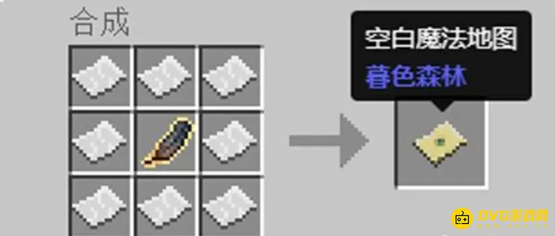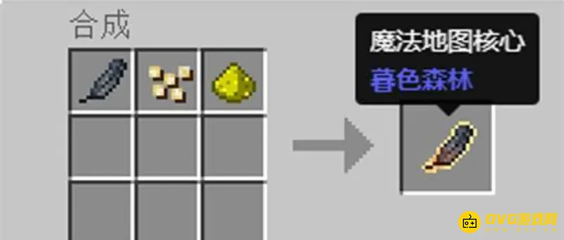 一、在工作台合成魔法地图核心:魔法地图核心=乌鸦羽毛 火炬浆果 荧石粉。
