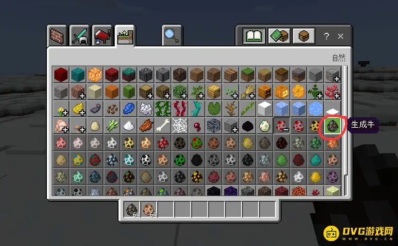 1,首先我们可以开创造模式拿一些牛的生物蛋。