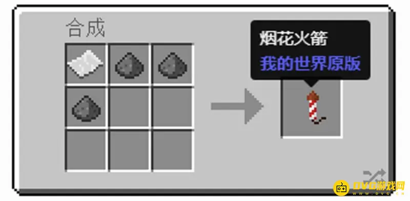 我的世界游戏中的导弹其实就是烟花火箭这个道具,我们在工作台上使用1个纸和3个火药就可以制作烟花火箭导弹啦。