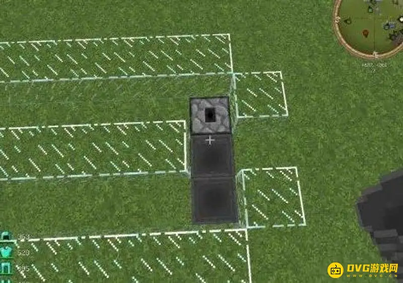 3、放置一个朝上的投掷器,然后如图放两个朝向它的漏斗。