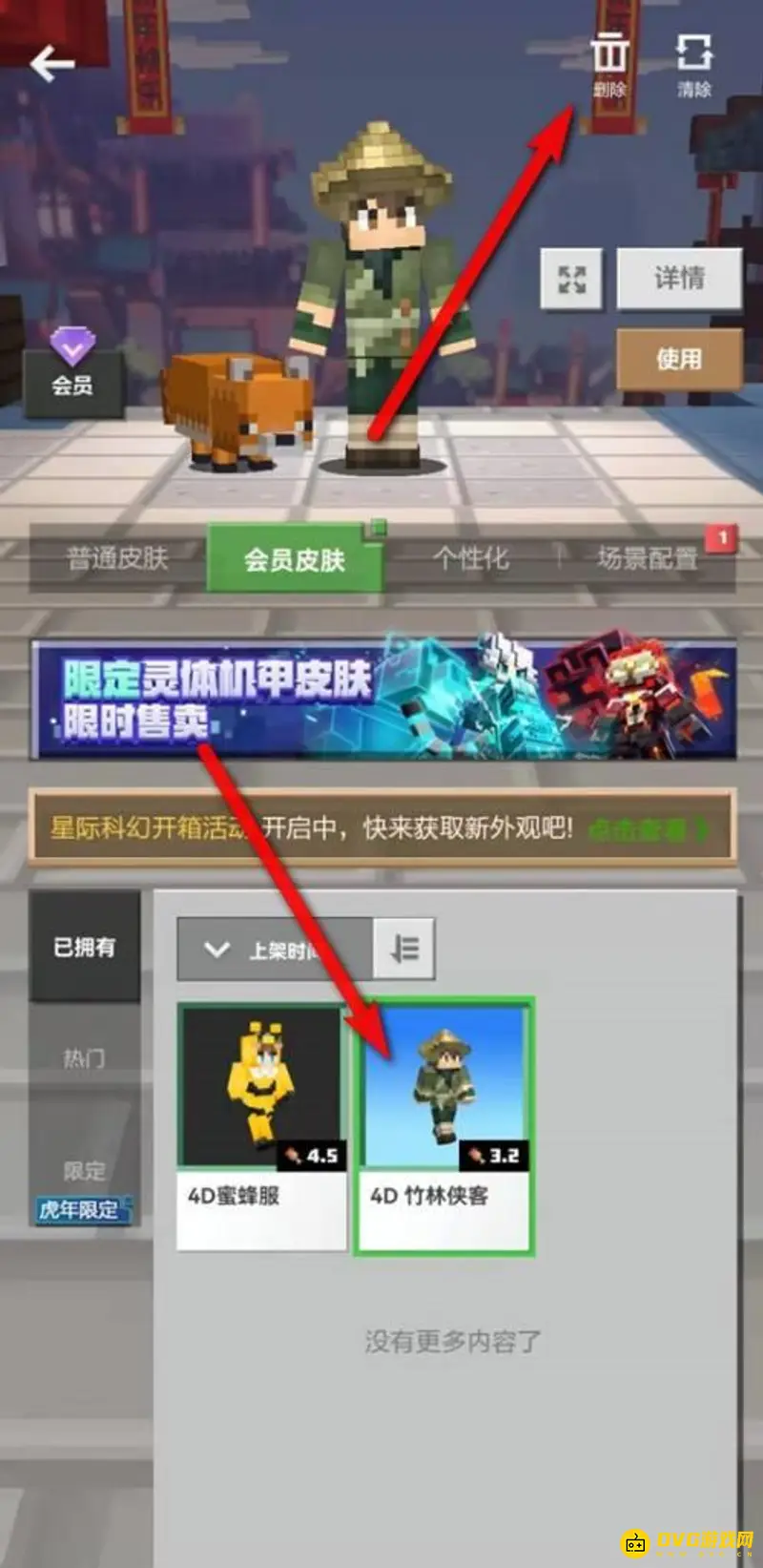 我的世界删除皮肤的方法: