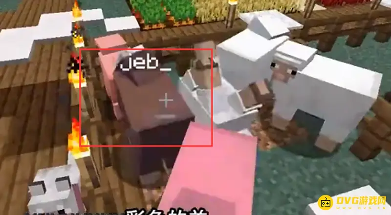 2.对着想要更换颜色的羊使用,即可让它的颜色不停变换,同时它的名字也变成了“jeb_”。