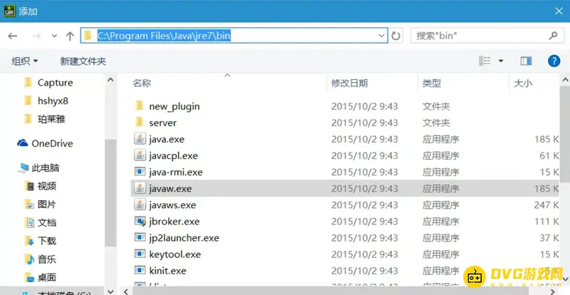5、选择 C:Program FilesJavajre7injavaw.exe这个文件,点击打开。记住,一定要选择javaw这个文件哦。