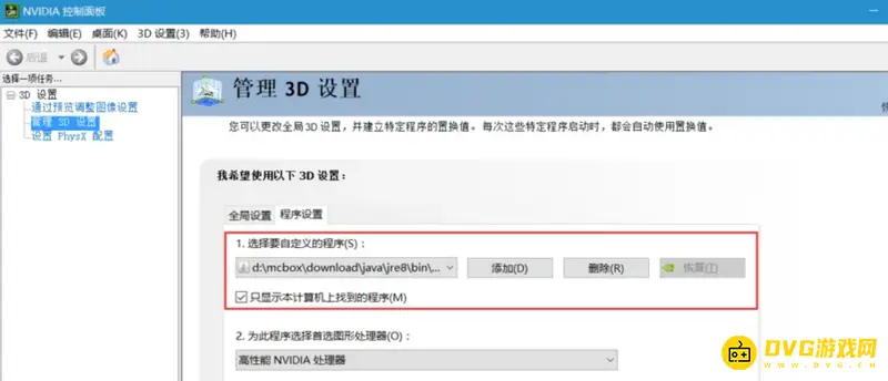6、添加完成之后,在下面选择高性能NVIDIA处理器,最后点击应用。这样就完成啦。