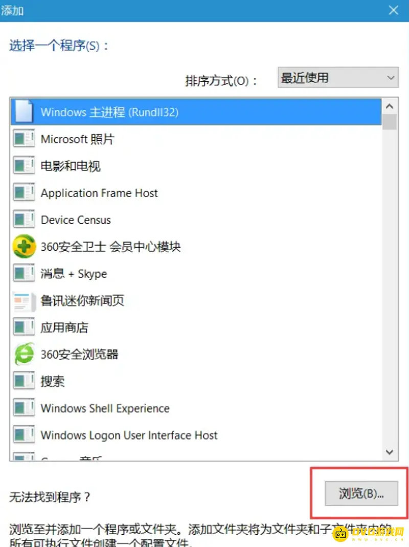 3、找到“选择要自定义的程序”, 点击旁边的‘添加‘。