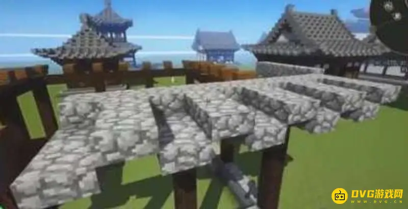 7.选择合适的方块作为台阶,要选择和建筑物样式有差别,但差别不大的方块。