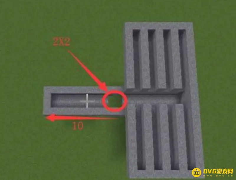 6.在横向的尽头空出一个2X2的区域,并且两边向外延伸10格围起来,中间区域为8格的距离。