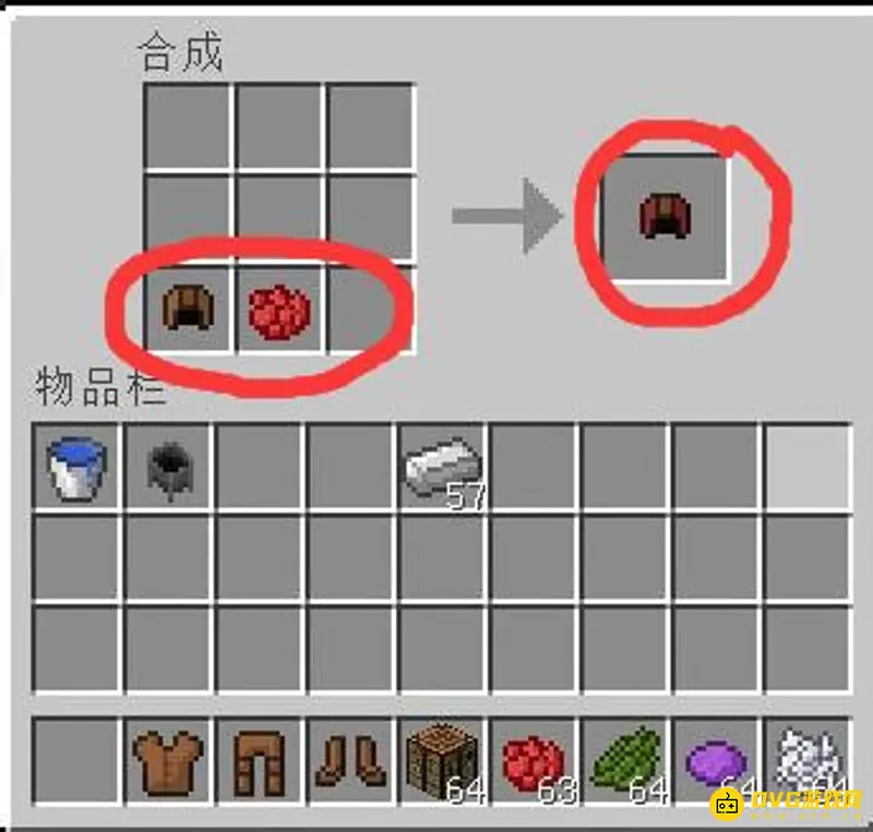 3,我们可以放上红色燃料和帽子,就可以染成红色的皮革帽子了。