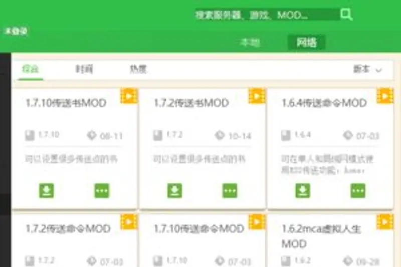 2.在页面找到左边的MOD选项,再点击上面的网络选项,你就可以搜索自己想要的模组MOD了。下载的MOD版本一定要与游戏版本一样。