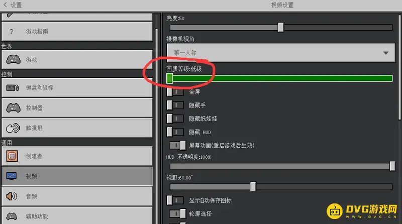 1,首先我们进入我的世界游戏设置,点击左侧的视频选项,然后把右侧画质拉到最低。