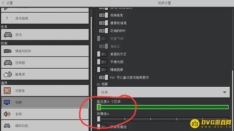 2,接着再把下方的能见度和抗锯齿拉到最低就可以了,这样调就是最流畅的。